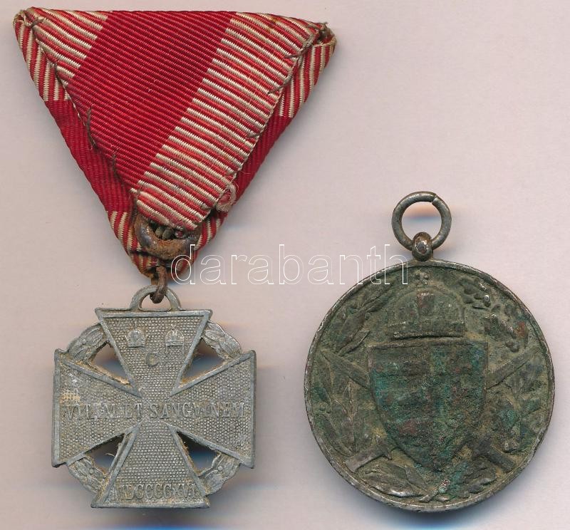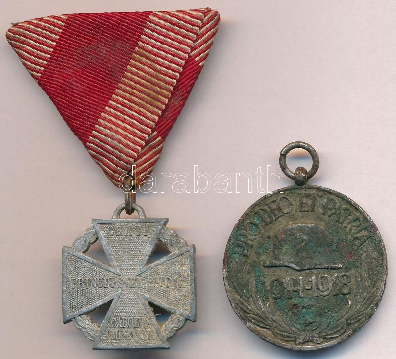1916. "Károly - Csapatkereszt" cink kitüntetés mellszalaggal + Magyarország 1929-1945. "Magyar Háborús Emlékérem" ezüstözött Br emlékérem (37mm) T:2-,3