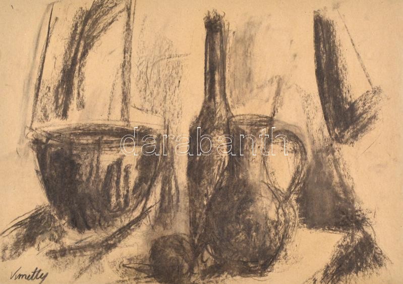 Kmetty jelzéssel: Csendélet. Szén, papír, sérült. 42x63,5 cm