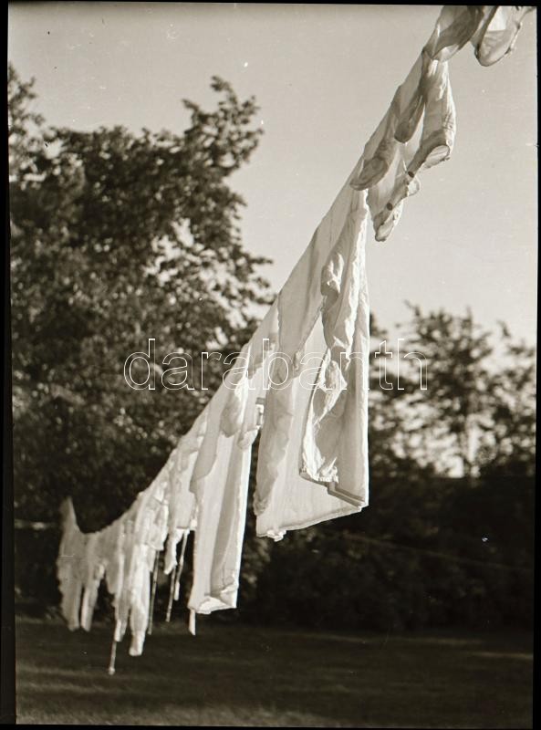 cca 1933 Kinszki Imre (1901-1945) budapesti fotóművész hagyatékából, vintage NEGATÍV (száradó ruhák), 5x4 cm