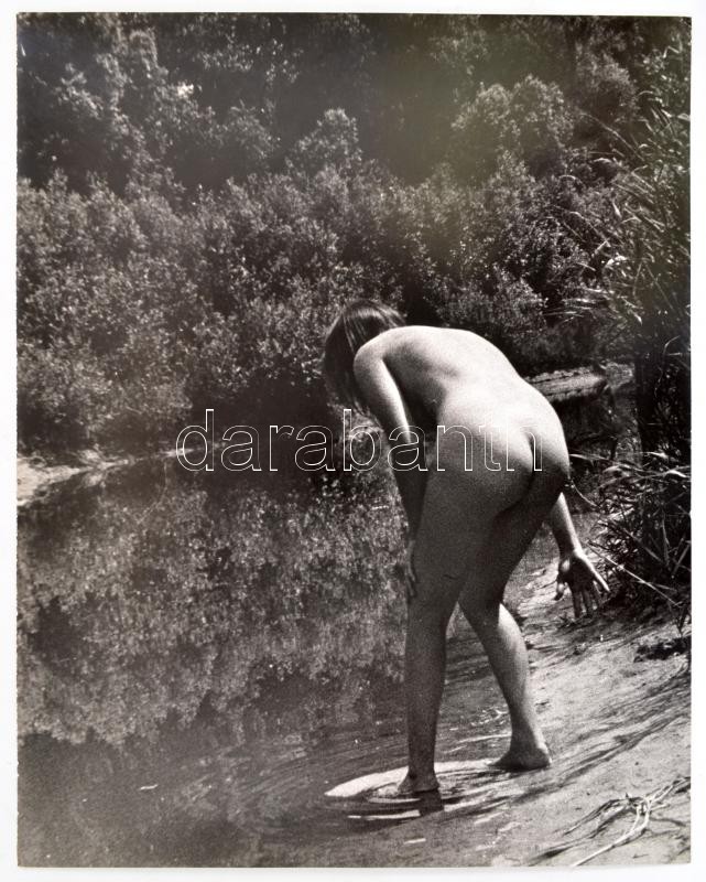 cca 1974 Marinkay István (1920-?) veszprémi fotóművész hagyatékából aláírt vintage fotóművészeti alkotás (Akt a vízparton), 38,3x30 cm