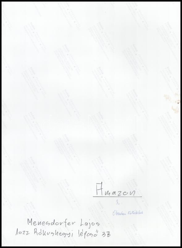 cca 1988 Menesdorfer Lajos (1941-2005) budapesti fotóművész hagyatékából, feliratozott vintage fotóművészeti alkotás (Amazon), 40x30 cm