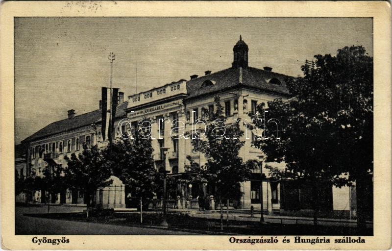 Gyöngyös, országzászló és Hungária szálloda