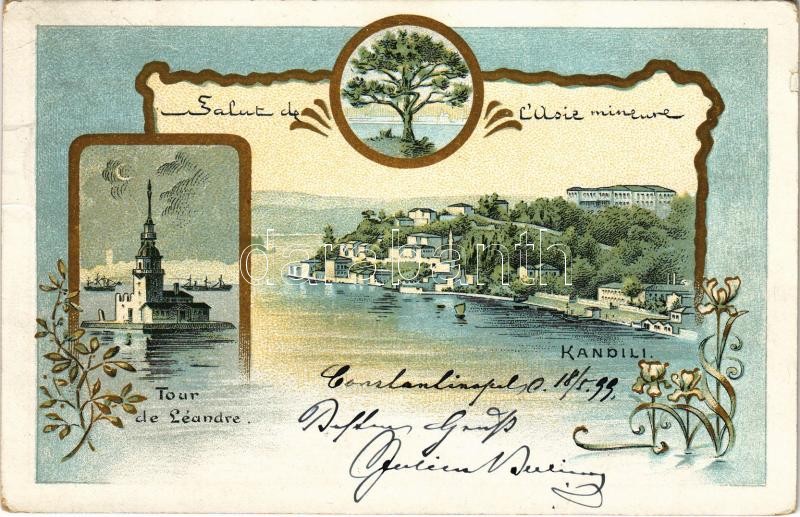 1899 Constantinople, Istanbul; Kandili, Tour de Léandre / tower, Kandilli. Art Nouveau, floral, litho (EK)