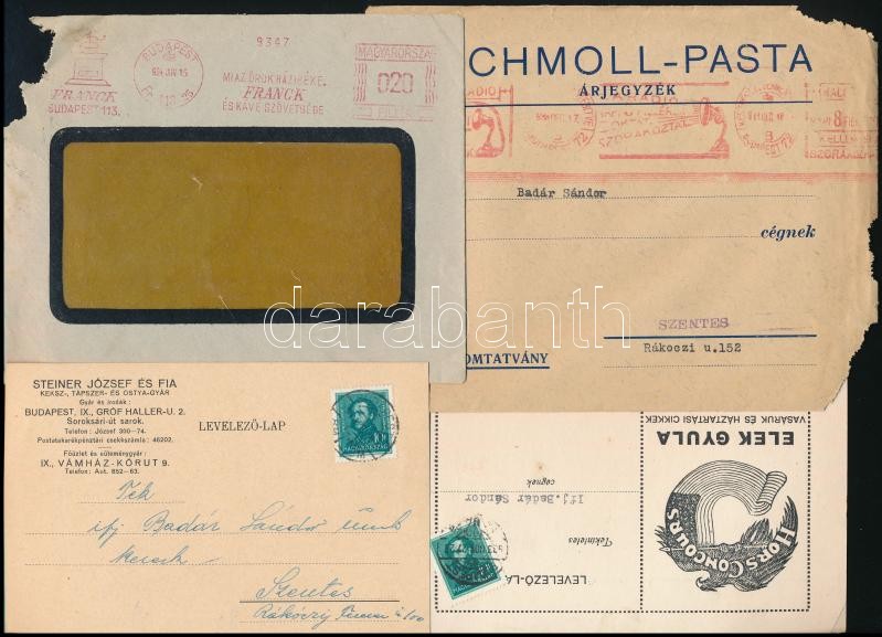 cca 1930-42 össz. 10 db reklám levelezÅ‘lap és borÃték tétel (Franck ...