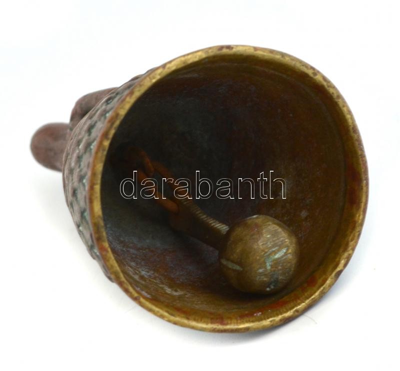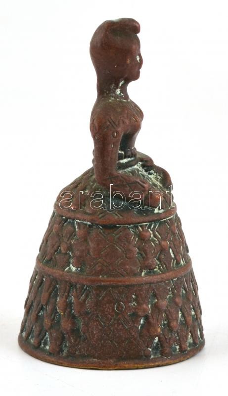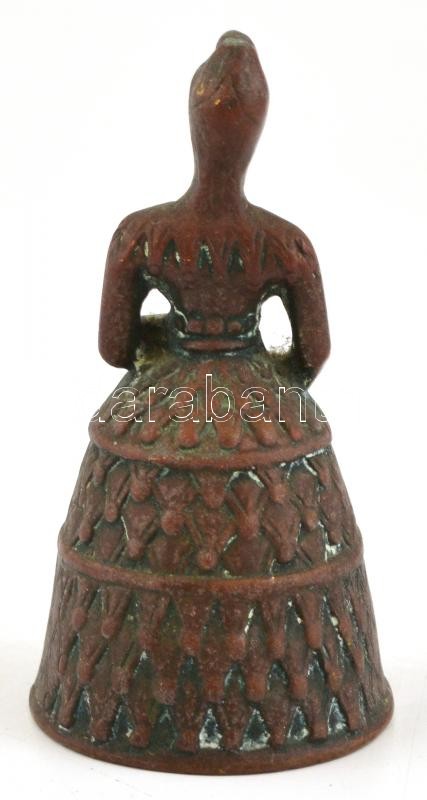 XIX. sz. közepe: Antik réz csengő asszony formában. 10 cm