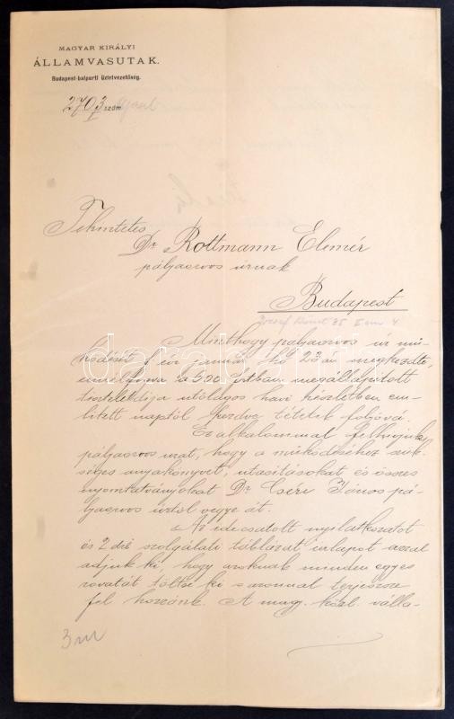 https://www.darabanth.com/en/374-Online-auction/374.0/Art-and-other-collectibles/Documents~2000106/1899-Magyar-Kiralyi-Allamvasutak-fejleces-level-Dr-Rottmann-Elemer-orvosnak-alairassal~II2166136