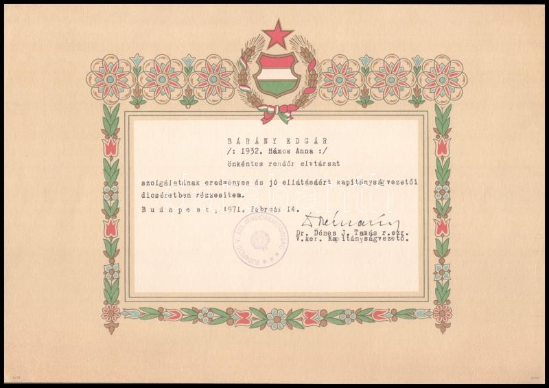 https://www.darabanth.com/en/374-Online-auction/374.0/Art-and-other-collectibles/Documents~2000106/1971-Bp-Onkentes-rendort-dicseretben-reszesito-oklevel~II2188975