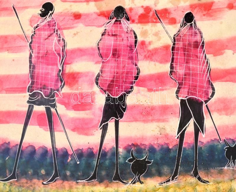 Bennszülötteket ábrázoló kézzel festett zsírkő dísztál, viaszfoltokkal...