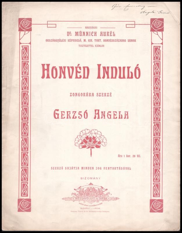 Honvéd Induló. Zongorára szerezte: Gerzsó Angéla. Bp., Rózsavölgyi és Társa.