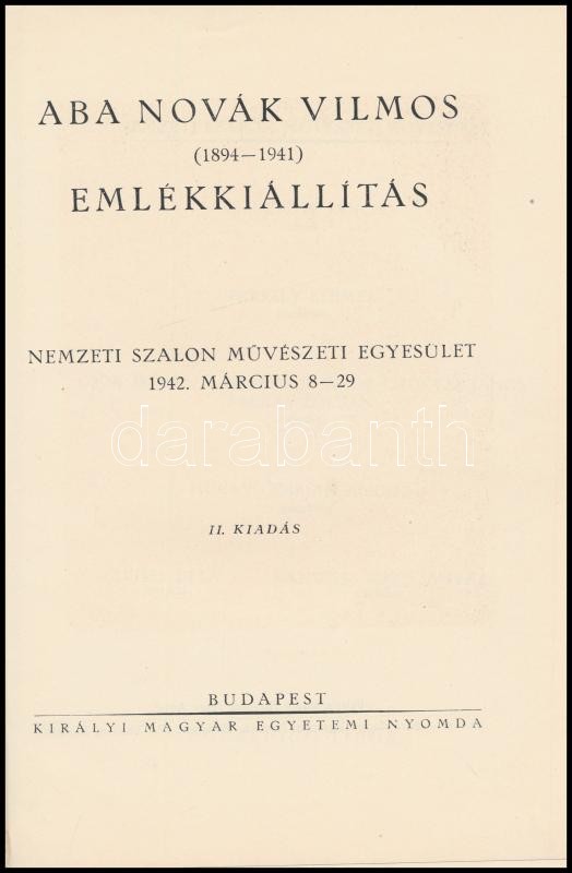 Aba-Novák Vilmos (1894-1941) emlékkiállítás. Nemzeti Szalon Művészeti ... https://www.darabanth.com/en/374-Online-auction/374.0/Books/Books-Architecture-Art~1000010/Aba-Novak-Vilmos-1894-1941-emlekkiallitas-Nemzeti-Szalon-Muveszeti-Egyesulet-1942-marci~II2187167