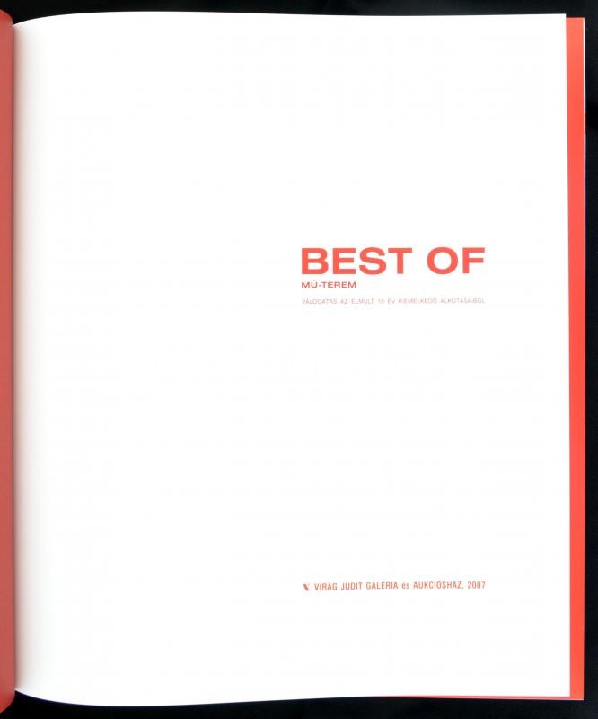 Description: Virág Judit - Törő István: Best of Mű-Terem. Válogatás az elmúlt 10 év kiemelkedő alkotásaiból. 2007, Virág Judit Galéria és Aukciósház. Kiadói kartonált kötés, papír védőborítóval, jó állapotban.