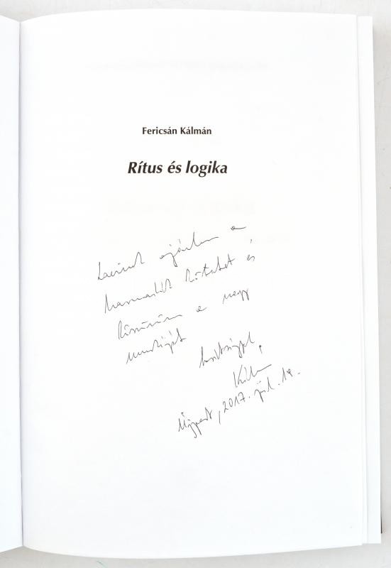 Fericsán Kálmán: RÃtus és logika. A görögök nevelési irányzatai, elvei és az elsÅ‘ oktatási rendszer. A pedagógusképzés történeti elÅ‘zményei III. köt. Bp., 2017., Agroinform. Kiadói kartonált papÃrkötés. A szerzÅ‘, Fericsán Kálmán (1945-2018) által dedikált.