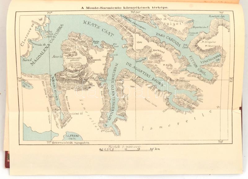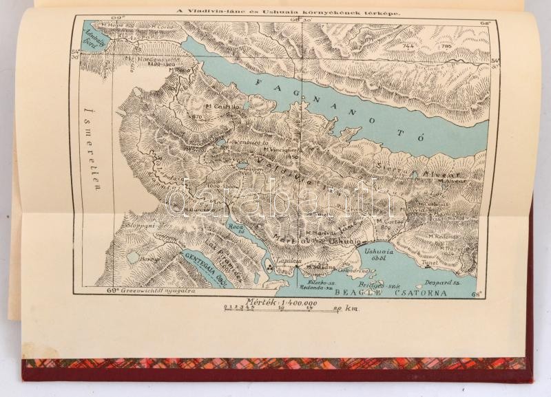 [Agostini, Alberto Maria de (1883-1960)] Alberto M. De Agostini: Tíz esztendő a Tűzföldön. Fordította: Cholnoky Béla. Magyar Földrajzi Társaság Könyvtára. Bp.,[1926.], Lampel R. (Wodianer F. és Fiai), 209+3 p.+28 t. (Fekete-fehér fotók)+2 térkép és 1 térkép melléklettel. Szövegközti és egészoldalas fekete-fehér képekkel illusztrálva. Kiadói dúsan aranyozott egészvászon sorozatkötésben, kis kopásnyomokkal, de alapvetően jó állapotban.