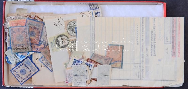 Néhány száz osztrák-magyar okmánybélyeg dobozban