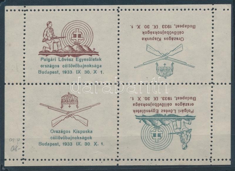 1933 Polgári Lövész Egyesületek levélzáró kisív / label mini sheet