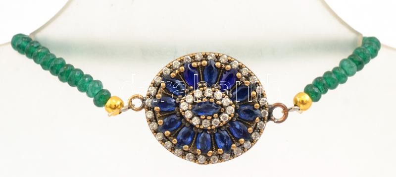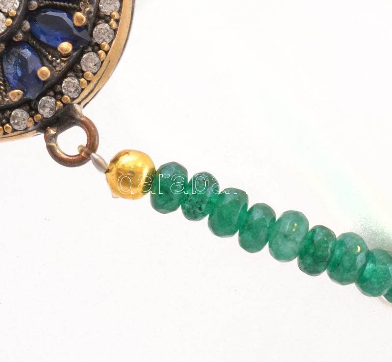 Aranyozott ezüst(Ag) medál, kövekkel, jelzés nélkül, gumírozott gyöngy...