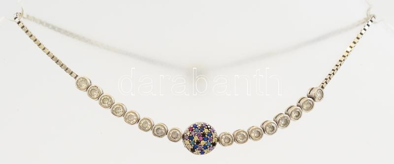 Ezüst(Ag) apró kövekkel kirakott, állítható karkötő, jelzés nélkül, max. h: 22 cm, bruttó: 6,13 g