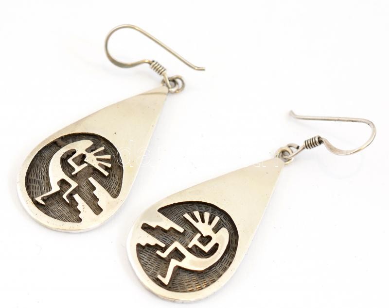 Ezüst(Ag) csepp alakú fülbevalópár, jelzett, h: 4 cm, nettó: 6,11 g