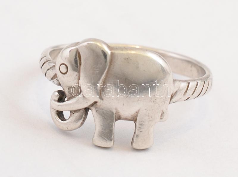 Ezüst(Ag) elefántos gyűrű, jelzett, méret: 58, nettó: 3,4 g