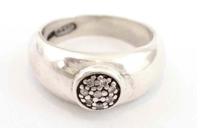 Ezüst(Ag) gyűrű, apró rózsaszín kövekkel, jelzett, méret: 52, bruttó: 4,41 g