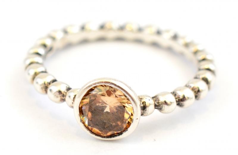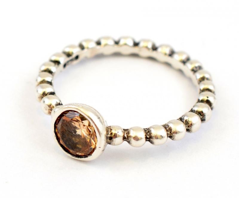 Ezüst(Ag) gyűrű, sárgás kővel, jelzett, méret: 53, bruttó: 2,4 g