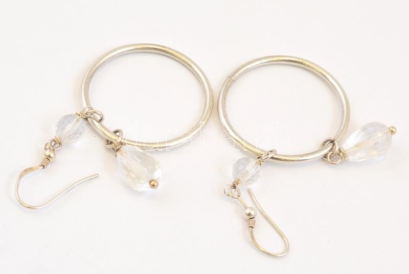 Ezüst(Ag) hegyikristállyal díszített fülbevalópár, jelzett, h: 8 cm, bruttó: 7,36 g