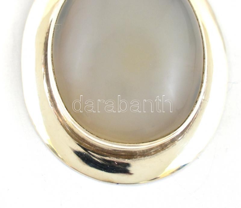 Ezüst(Ag) kaboson formára csiszolt achát medál, jelzett, h: 4,5 cm, bruttó: 8,97 g