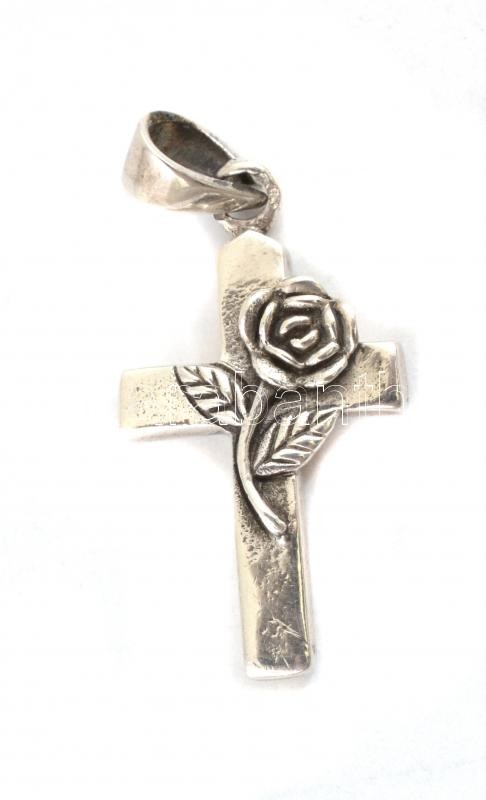 Ezüst(Ag) rózsás kereszt függő, jelzett, 3,6×1,6 cm, nettó: 5,6 g
