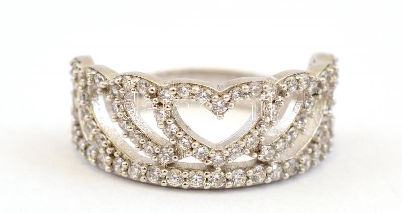 Ezüst(Ag) szívecskés gyűrű, apró kövekkel, Pandora jelzéssel, méret: 5...