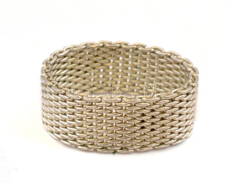 Ezüst(Ag) szövött gyűrű, jelzett, méret: 62, nettó: 5,5 g