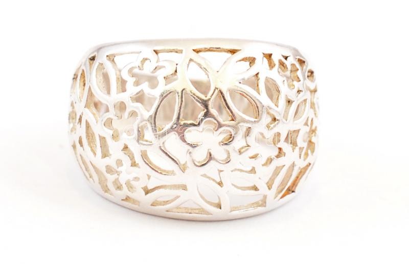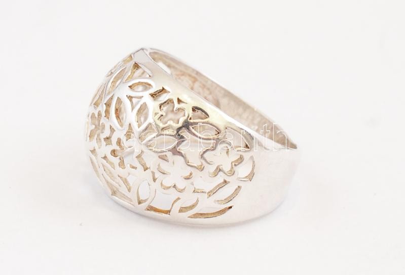 Ezüst(Ag) virágos, áttört gyűrű, jelzett, méret: 53, nettó: 4,2 g