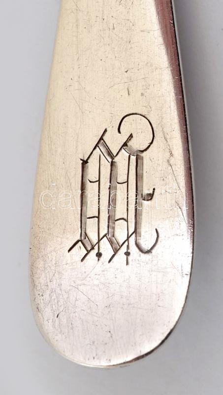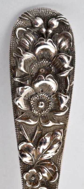 Ezüst(Ag) virágos nyelű, háromágú villa, jelzett, h: 23 cm, nettó: 52,...