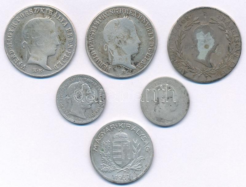 1830-1937. 6db-os vegyes Ag érme tétel, közte 1848KB 20Kr Ag "V. Ferdinánd" T:3