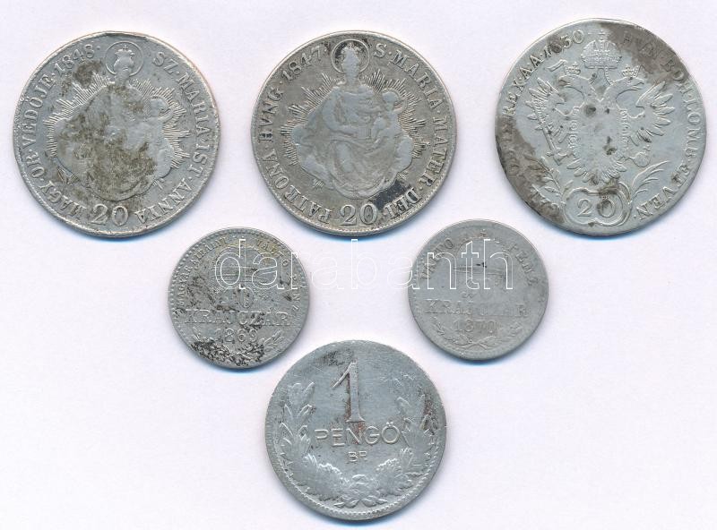 1830-1937. 6db-os vegyes Ag érme tétel, közte 1848KB 20Kr Ag "V. ...