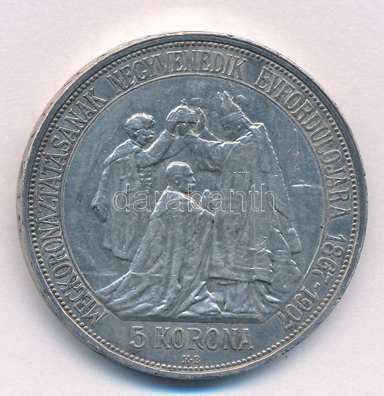 https://www.darabanth.com/en/374-Online-auction/374.0/Numismatics/Hungarian-coins-and-coins-with-Hungarian-mint-marks~1500008/1907KB-5K-Ag-Ferenc-Jozsef-koronazasanak-40-evforduloja-T2-apro-ph-karc-Adamo-K71~II2186413