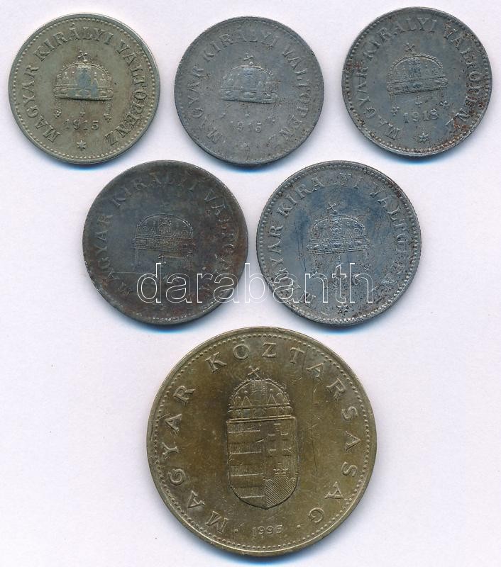 1915. 10f Cu-Ni-Zn + 1915. 10f Fe + 1916. 20f Fe (2x) + 1918KB 10f Fe + 1995. 100Ft Cu-Ni-Zn T:2,2-
