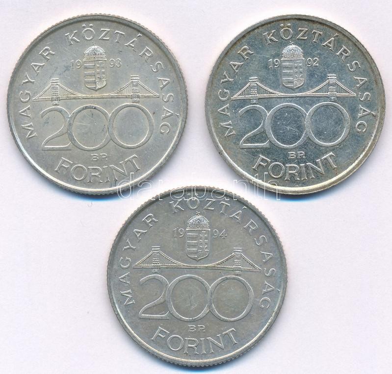 1992-1993. 200Ft Ag "MNB" (2x) + 1994. 200Ft Ag "Deák" T:2