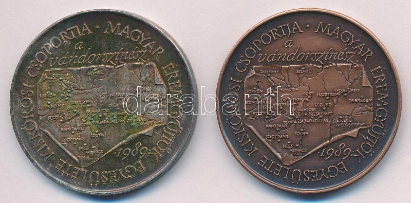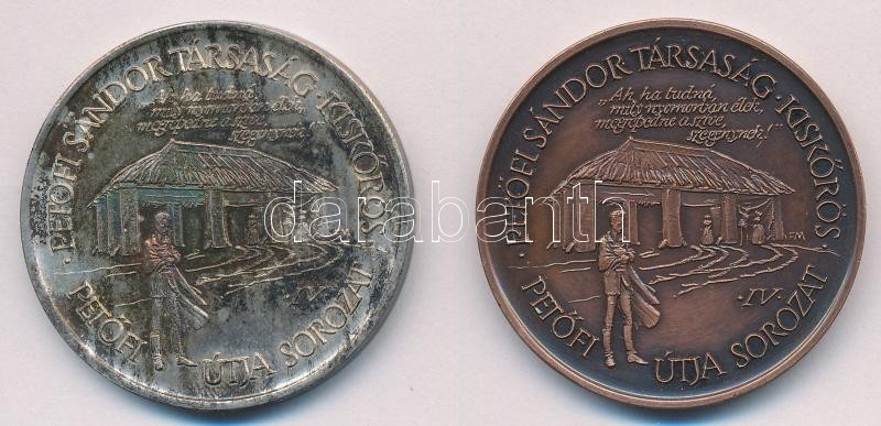 Description: Fritz Mihály (1947-) 1989. "Petőfi útja sorozat IV. / Magyar Éremgyűjtők Egyesülete kiskőrösi csoportja 1990" Ag + Br emlékérem pár (35,90g/0.835/42mm) T:1,1- (az Ag érem eredetileg PP) patina