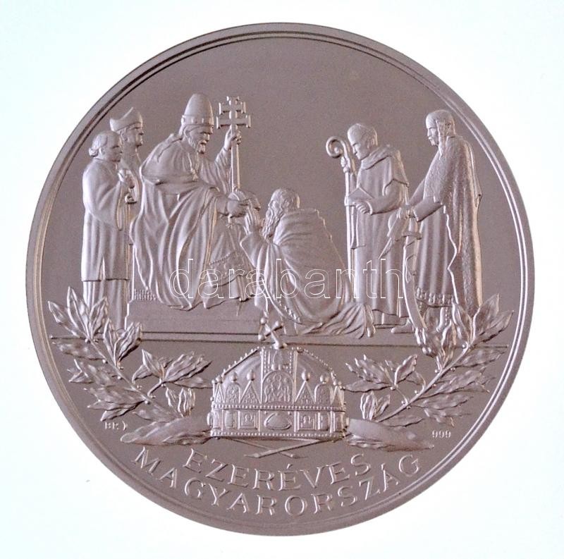 Kósa István (1953- ) 2000. "Szent István - Államalapító 969-1038 / Ezeréves Magyarország" Ag emlékérem eredeti tokban (31,08g/0.999/42mm) T:PP kis fo.