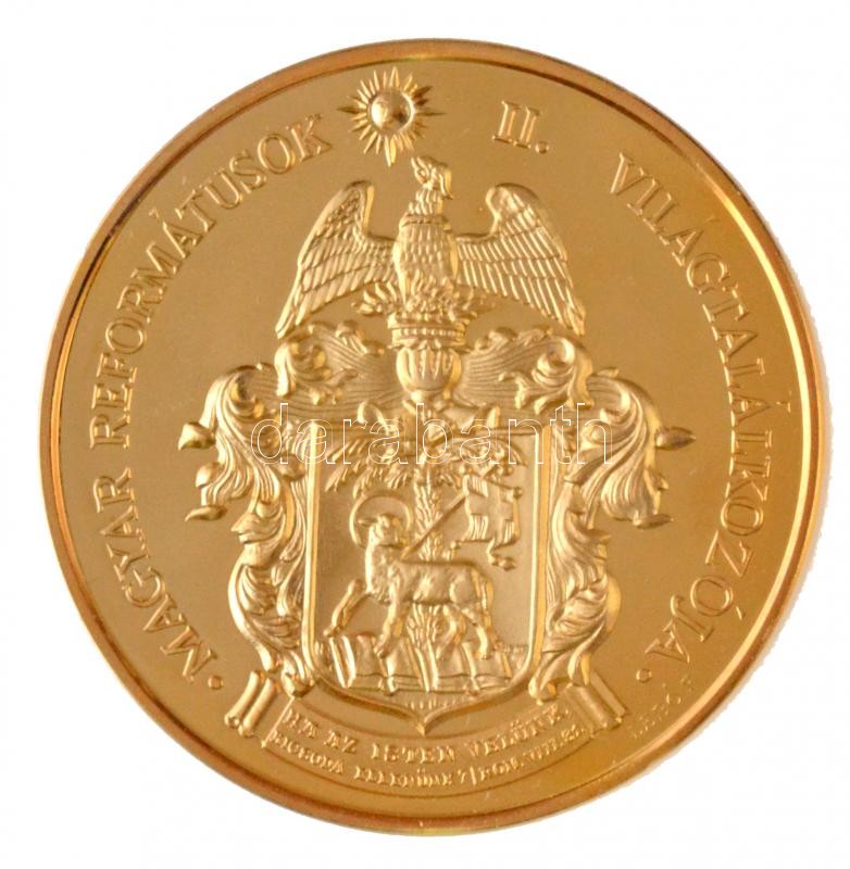 Lebó Ferenc (1960-) 1991. "Magyar Reformátusok II. Világtalálkozója" aranyozott fém emlékérem, eredeti tokban (42,5mm) T:PP ujjlenyomat