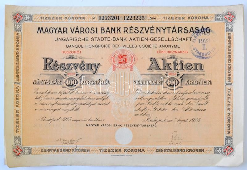 https://www.darabanth.com/en/374-Online-auction/374.0/Numismatics/Shares-and-Tickets~1500005/Budapest-1923-Magyar-Varos-Bank-Reszvenytarsasag-25-reszvenye-egyenkent-400K-rol-szelve~II2137530