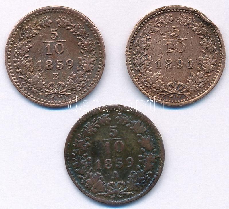 Ausztria 1859A 5/10kr Cu + 1859B 5/10kr Cu + 1891. 5/10kr Cu T:2