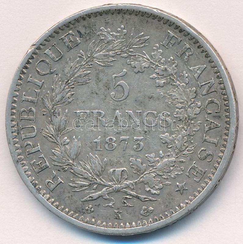 https://www.darabanth.com/en/374-Online-auction/374.0/Numismatics/Worldwide-silver-and-metal-coins~1500021/Franciaorszag-1873K-5Fr-Ag-T2-ph-France-1873K-5-Francs-Ag-CXF-edge-error-Krause-KM238202~II2135031