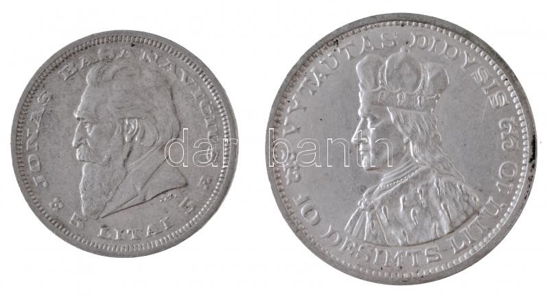 Litvánia 1936. 5L Ag "Jonas Basanavičius" + 10L Ag "Vitold" (8,92g, 18,29g) T:2,1- kis ph. / Lithuania 1936. 1936. 5 Litai Ag "Jonas Basanavičius" + 10 Litu Ag "Vytautas" (8,92g, 18,29g) C:XF,AU small edge error Krause KM# 82, 83