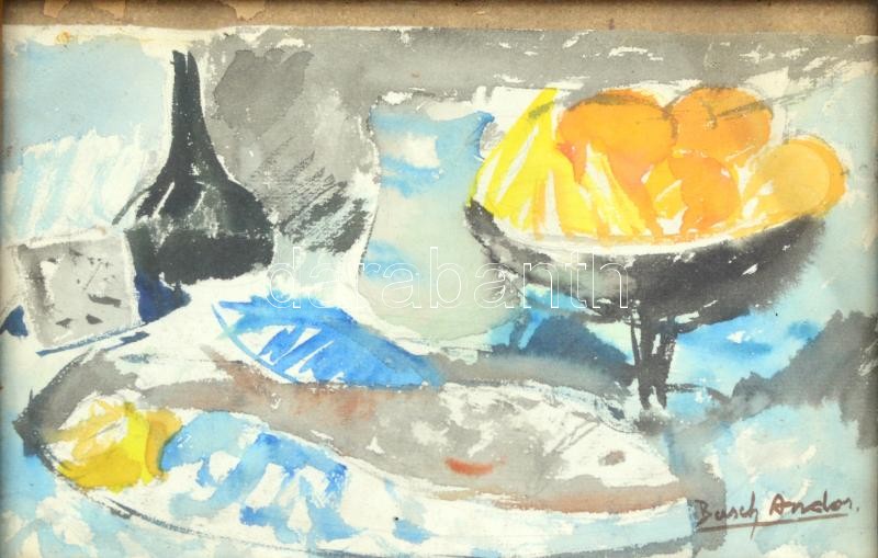 Basch jelzéssel: Csendélet. Akvarell, papír, üvegezett fa keretben, 16...