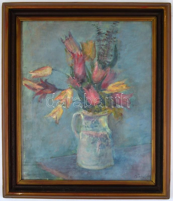 Czinkotay Frigyes (1932-2018): Tulipános csendélet. Olaj, farost, jelz... https://www.darabanth.com/en/374-Online-auction/374.0/Paintings-and-graphics/Paintings-and-graphics~1/Czinkotay-Frigyes-1932-2018-Tulipanos-csendelet-Olaj-farost-jelzett-hatoldalan-a-muvesz~II2184221