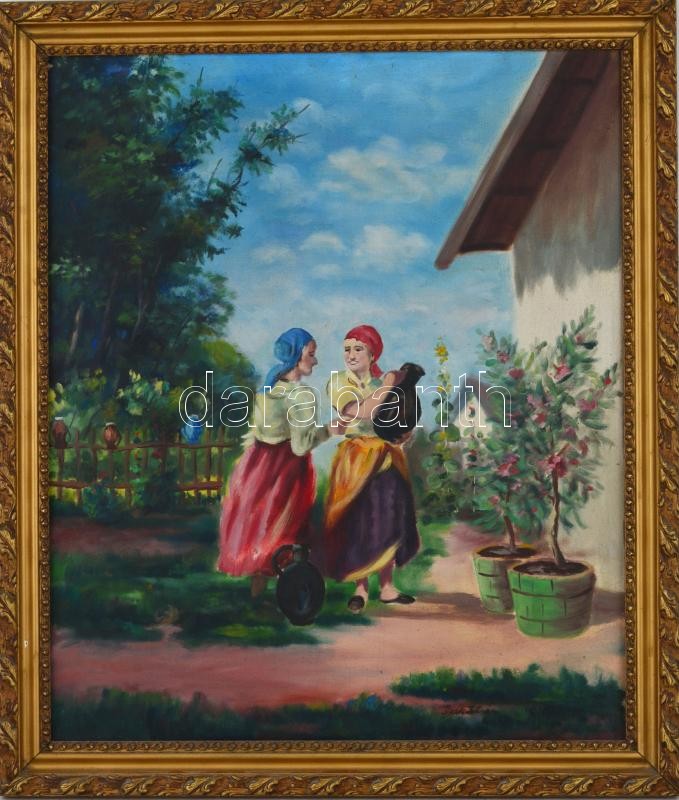 Deák István jelzéssel: Falusi asszonyok. Olaj, vászon, fa keretben, 60x50