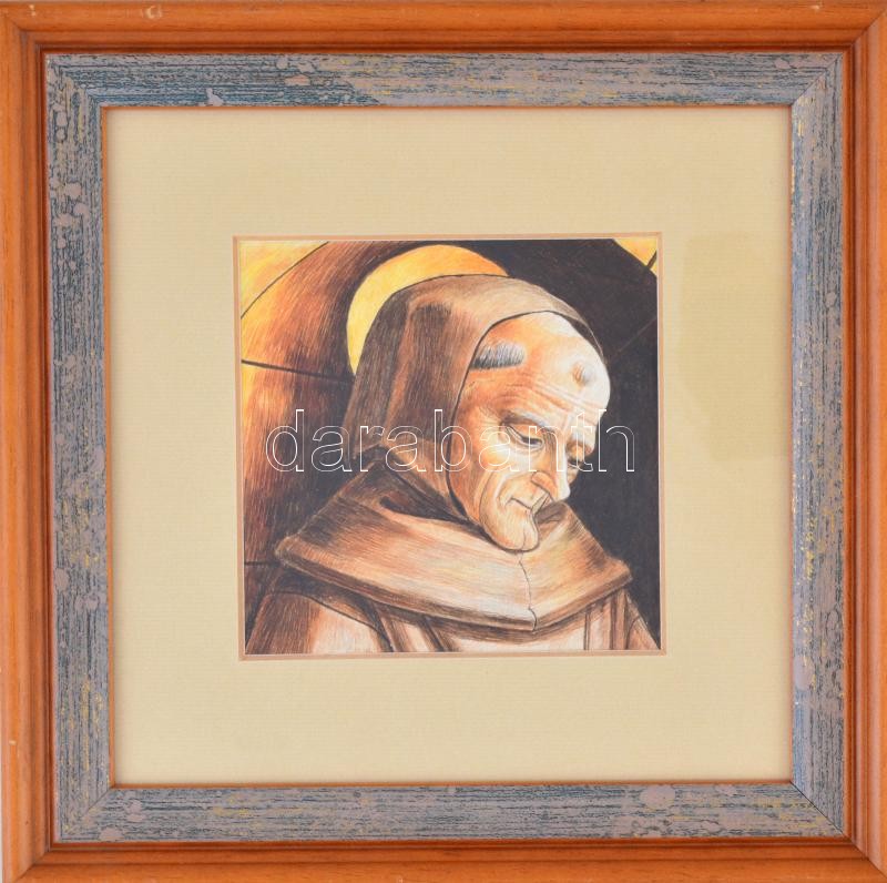 Jelzés nélkül: Középkori barát. Pasztell, papír. 11x11,5 cm