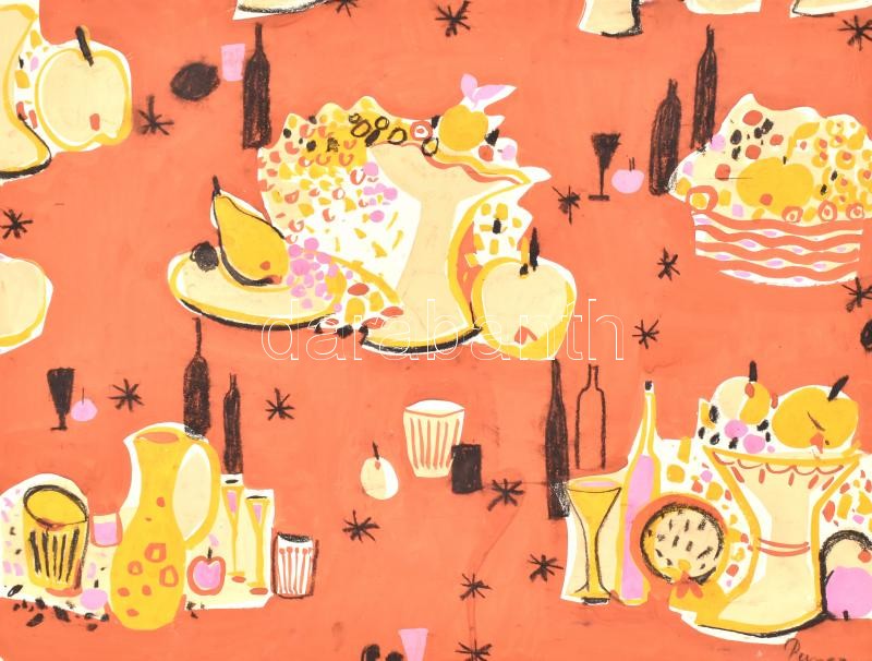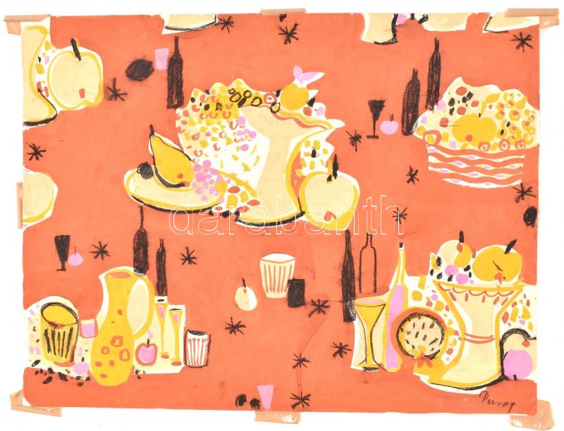 Parrag jelzéssel: Kompozíció. Vegyes technika, papír, hátoldalán ragasztás nyomaival, 39,5x51 cm