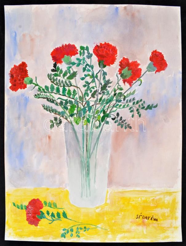 Séday jelzéssel: Virágcsendélet, akvarell, papír, 48×36 cm
